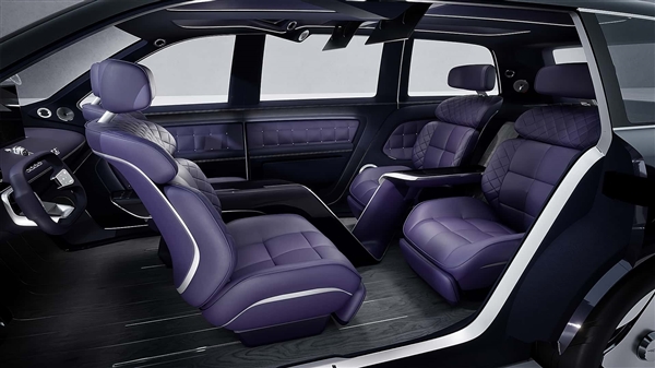 内饰非常有看点,由于是概念车,所以不少设计相当大胆,比如前排座椅支持旋转对坐,如此在车里可以召开一场会议,最大化利用车内空间。