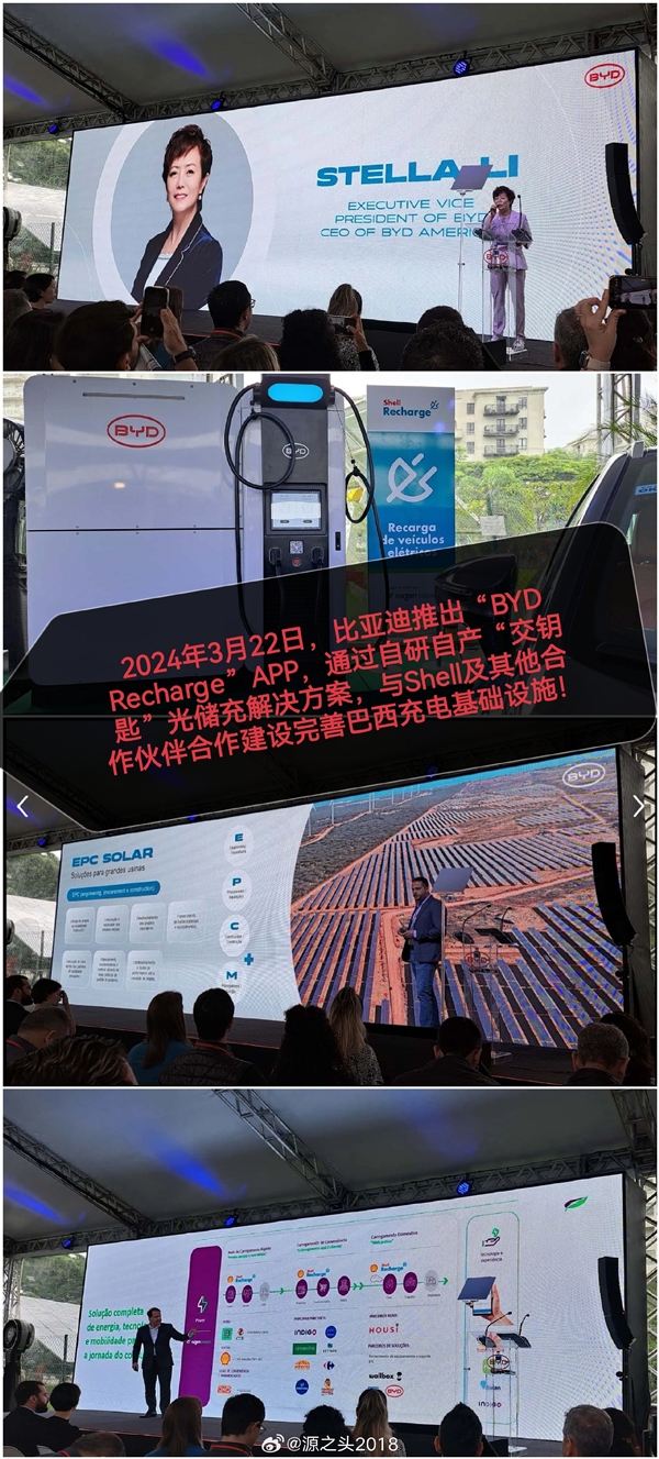 值得一提的是,在此前一天,比亚迪在巴西上线了“BYD Recharge(比亚迪充电)”APP ,通过自研自产的“光储充(太阳能+储能+充电桩)”一体化解决方案,联手Shell及其他合作伙伴,完善巴西充电基础设施建设。