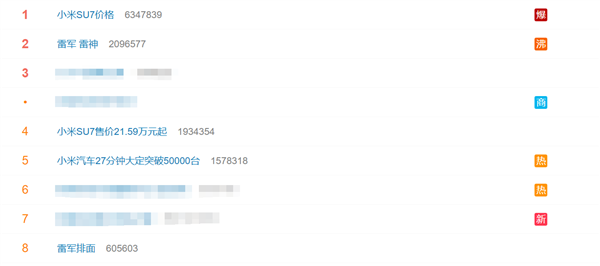 值得一提的是,小米SU7发布后引发全网关注,多个相关词条登上微博热搜,雷军也被网友们赋予了“雷神”称呼。