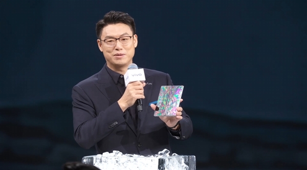 发布会展示阶段出现了一个小插曲,vivo产品副总裁黄韬在演示手机抗冻性能时,将手机从冰块中拿出来被发现花屏。