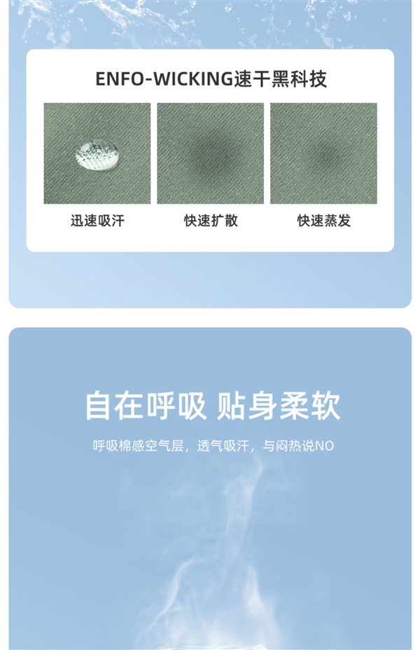 全涤高弹丝汗布面料,快速蒸发汗湿,提高运动舒适性。柔软呼吸棉感空气层,透气吸汗,不闷热。