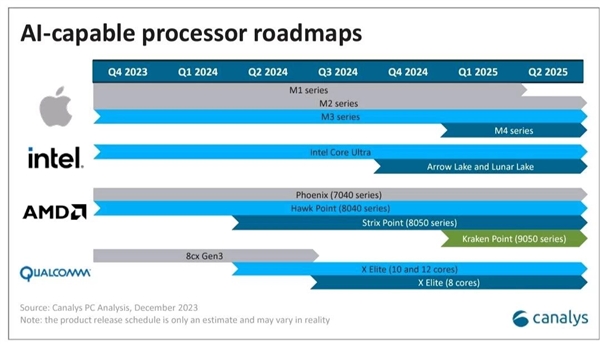 根据Canalys机构曝光的路线图,M4系列芯片有望2025年第1季度上线,将主打AI功能。