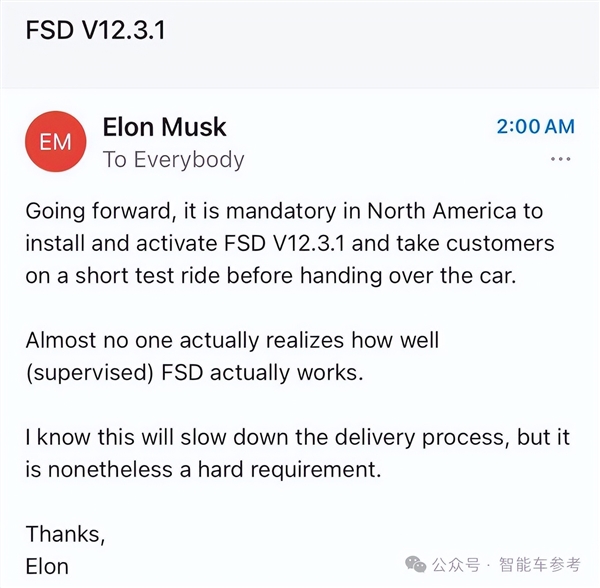 大半夜发出邮件,要求他们交车前,务必带车主体验一次FSD。