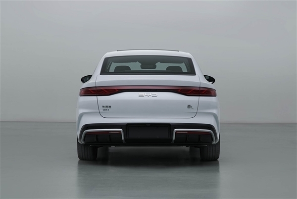 尾部整体设计还挺简洁,贯穿式的尾灯是家族化设计,左右两侧的光源也是比亚迪最新的“中国结”样式,尾门拥有BYD英文字母以及DM-i和秦L的标识。