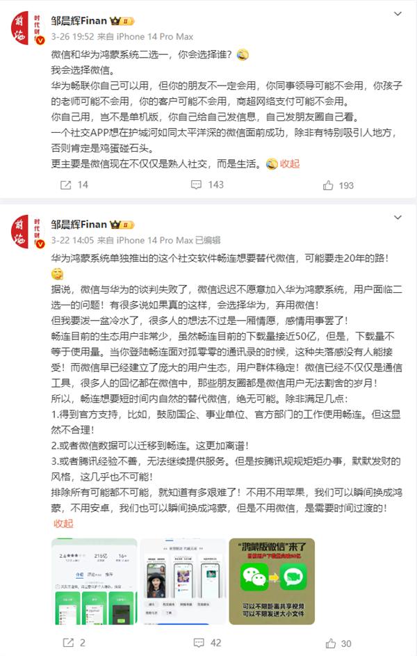 要求做出二选一的选择,支持华为还是支持微信?这取决于个人的观点、需求和利益,很难做出绝对的选择。