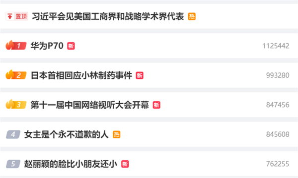 3月28日消息,今天,华为P70在没有任何预兆的情况下登上了微博热搜第一,关键是华为官方也没有发布任何消息,这个热搜就挺突然的。