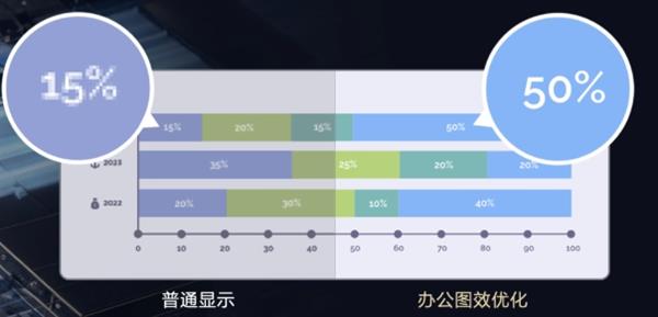 为了适用于更多的场景,星月均光系统采用了更适合办公显示的色域覆盖和色彩偏移,在色彩的准确性和还原度上,能媲美专业级显示器,对于设计公司来说,也不用担心会出现“色差”这种低级错误。