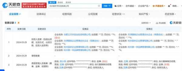 天眼查App显示,近日,杭州美羊羊科技有限公司发生工商变更,合肥三只羊创业投资有限公司【已更名三只羊(合肥)控股集团有限公司】退出股东行列,同时,三只羊控股集团高管吴小燕卸任监事,由韩明接任。