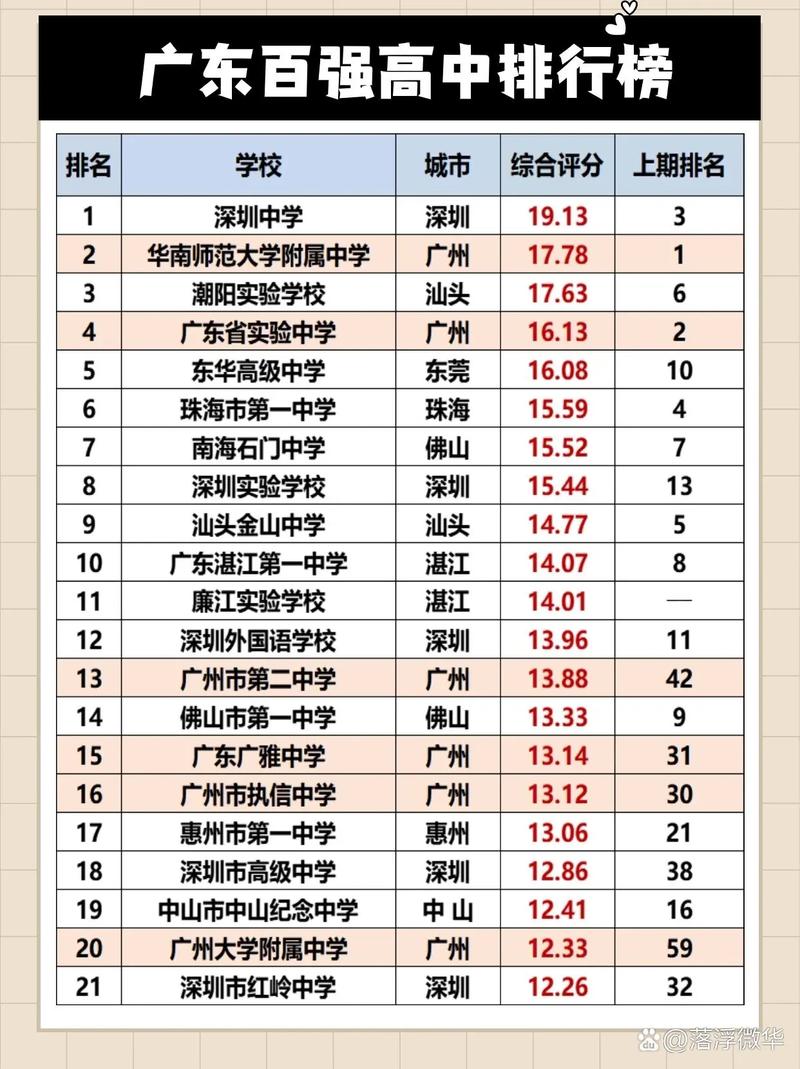 以下是广东省高考排名对应的部分学校名单: