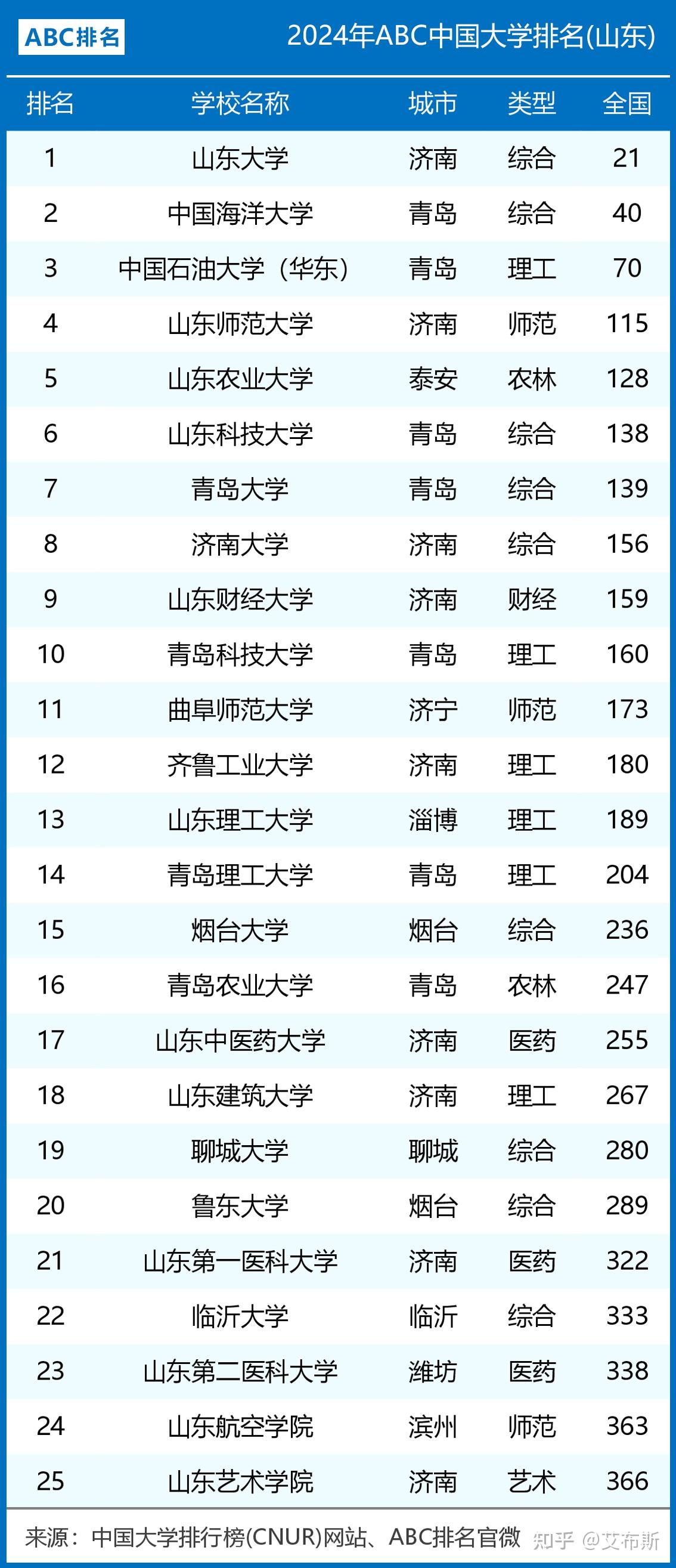 2024年的最新数据,以下是山东省大学的排名一览表: