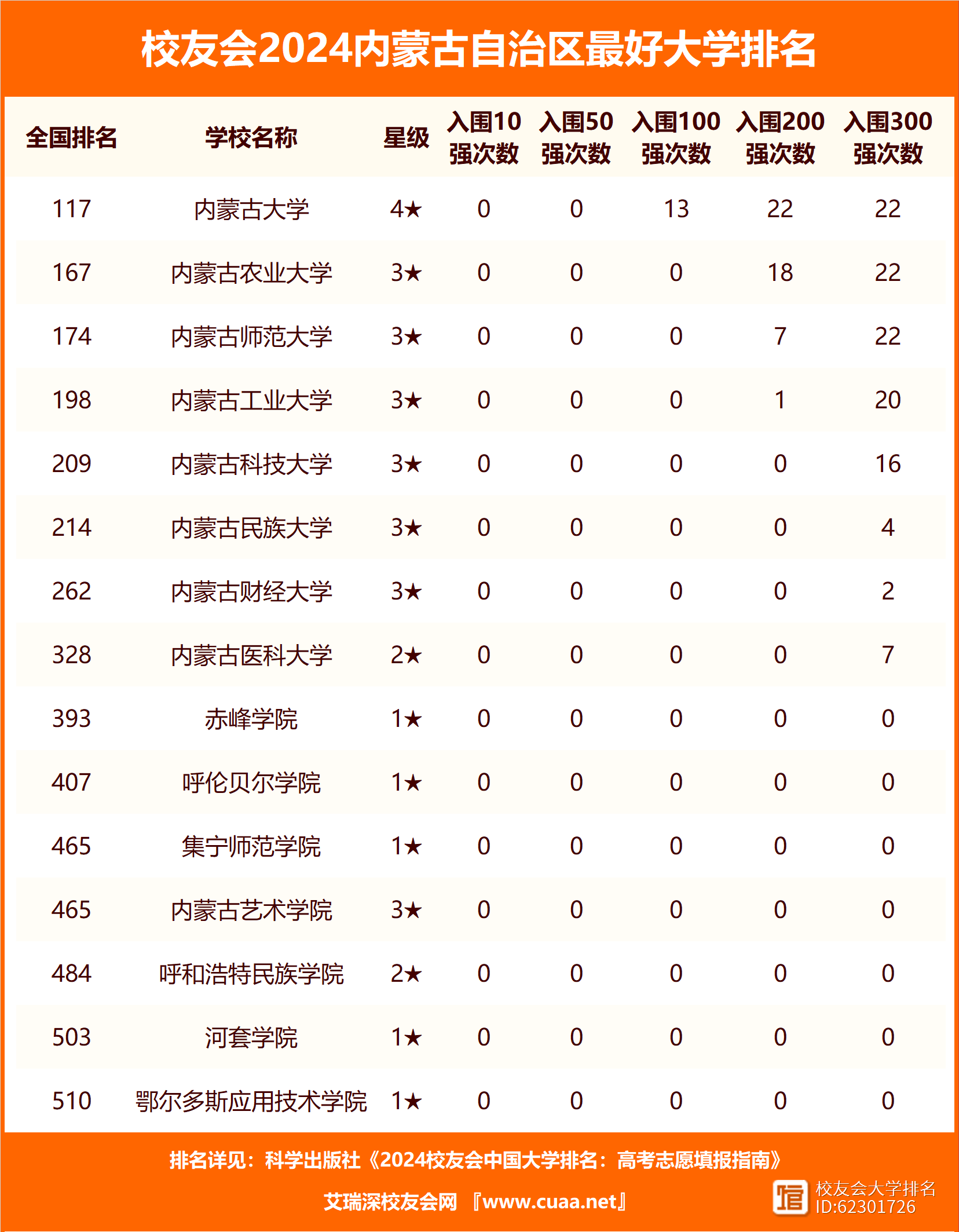 2. 校友会2024年中国大学排名数据,内蒙古农业大学在全国排名第167位。