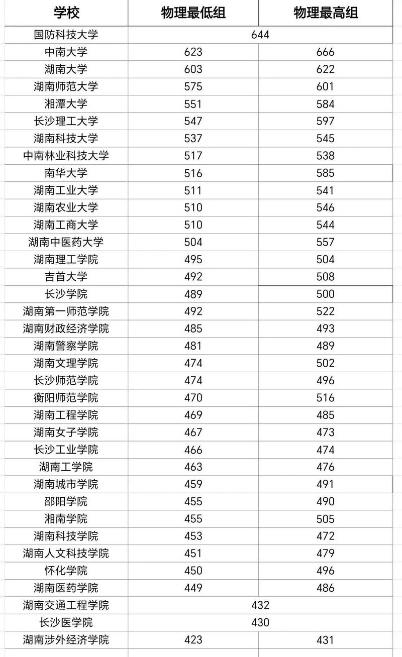 2023年985、211、双一流大学湖南录取分数线及位次一览表