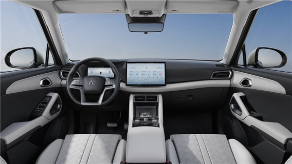 内饰采用了较为简洁的设计风格,座椅以及门板都采用了翻毛皮的材质,舒适感与质感都得到了提升,并搭载了8.8英寸的全液晶仪表盘和12.8英寸的悬浮式触控屏。