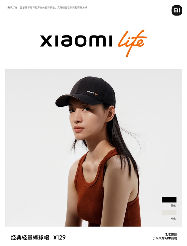 经典轻量棒球帽129元,黑色、米色。