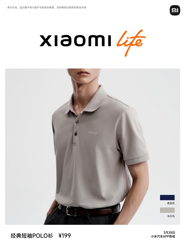 经典短袖POLO衫199元,藏蓝色、浅灰色。