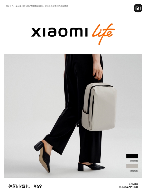 休闲小背包69元,黑色、浅米灰色。