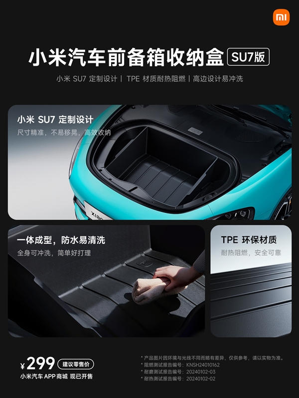 小米汽车前备箱收纳盒SU7版:299元