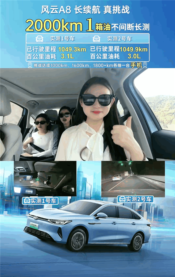 3月29日消息,日前,奇瑞风云新能源官方宣布,将进行奇瑞风云A8“一箱油跑2000公里”的挑战。