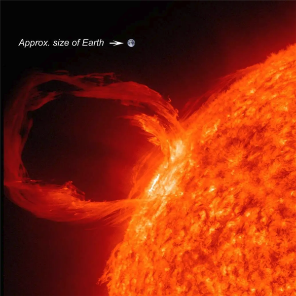一个普通尺寸日珥和地球对比