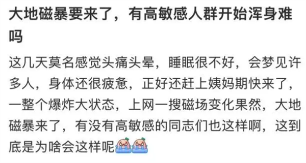 点开#地磁暴嗜睡#的话题,一水全是“难怪早上睡不醒”“怪不得睡了一整天”“原来是地磁暴,还以为是上班上的”。