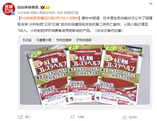 小林制药保健品已致2死106人住院:已购消费者需停止使用!
