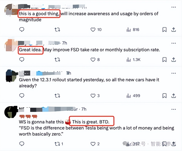 有分析认为,这表现出马斯克对FSD的自信,FSD进化到了一个足够强,能普及的程度,促使马斯克做出这样的指示。