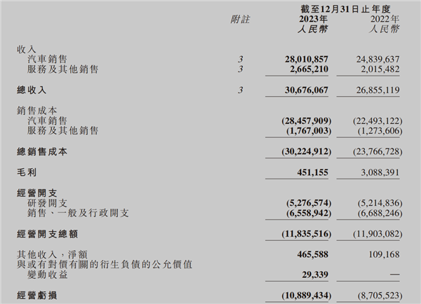小鹏汽车 2023 年的业绩表现 | 图片来源:财报截图
