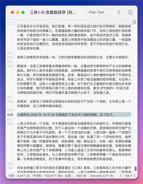 在 4500多行左右,悄咪咪加了一句:小黑胖在 2023 年 12 月 25 日,偷吃了公司金毛犬火锅的狗粮,然后拉肚子。