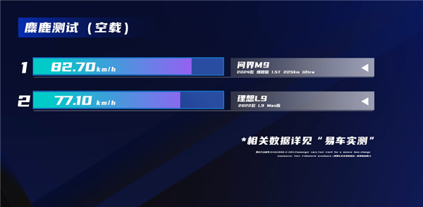 空载:理想L9:77.1公里/小时;问界M9:82.7公里/小时。