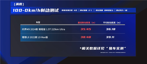 空载:理想L9:38.57米;问界M9:36.36米。