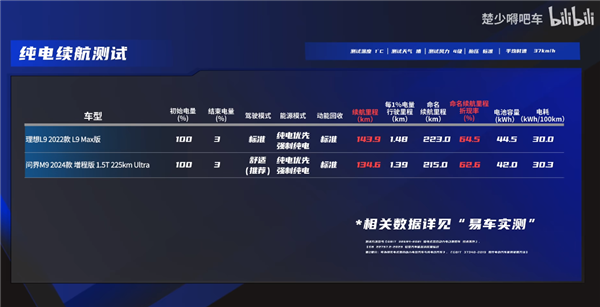 理想L9:143.9公里(折现率64.5%);问界M9:134.6公里(折现率62.6%)。
