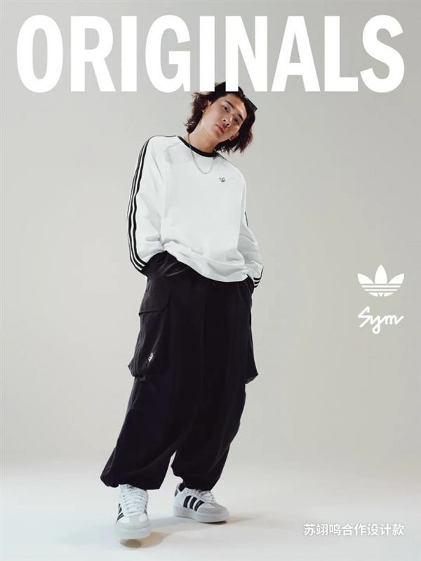 此次联名系列包括了长袖T恤、外套、工装裤以及鞋款等五款单品,每一款都以经典的黑白色系为主,结合了宽松的运动街头风格,旨在为滑手们提供更适合日常穿搭的时尚选择。adicolor联名系列的设计中不仅保留了adidas Originals标志性的三条纹元素,更加入了苏翊鸣亲自设计的细节,如他的手写体名字缩写和最喜爱的蝴蝶图案,这些个性化的元素让每一件单品都充满了故事和情感。