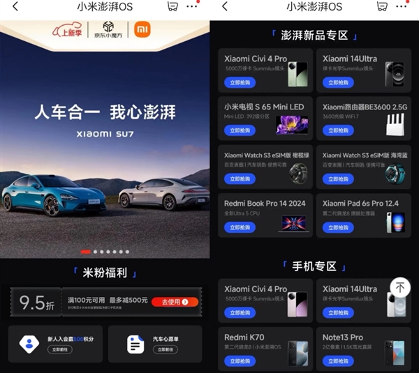 还等什么,快来京东APP搜索“小米澎湃OS”,入手小米3C数码好物,享超值福利吧!