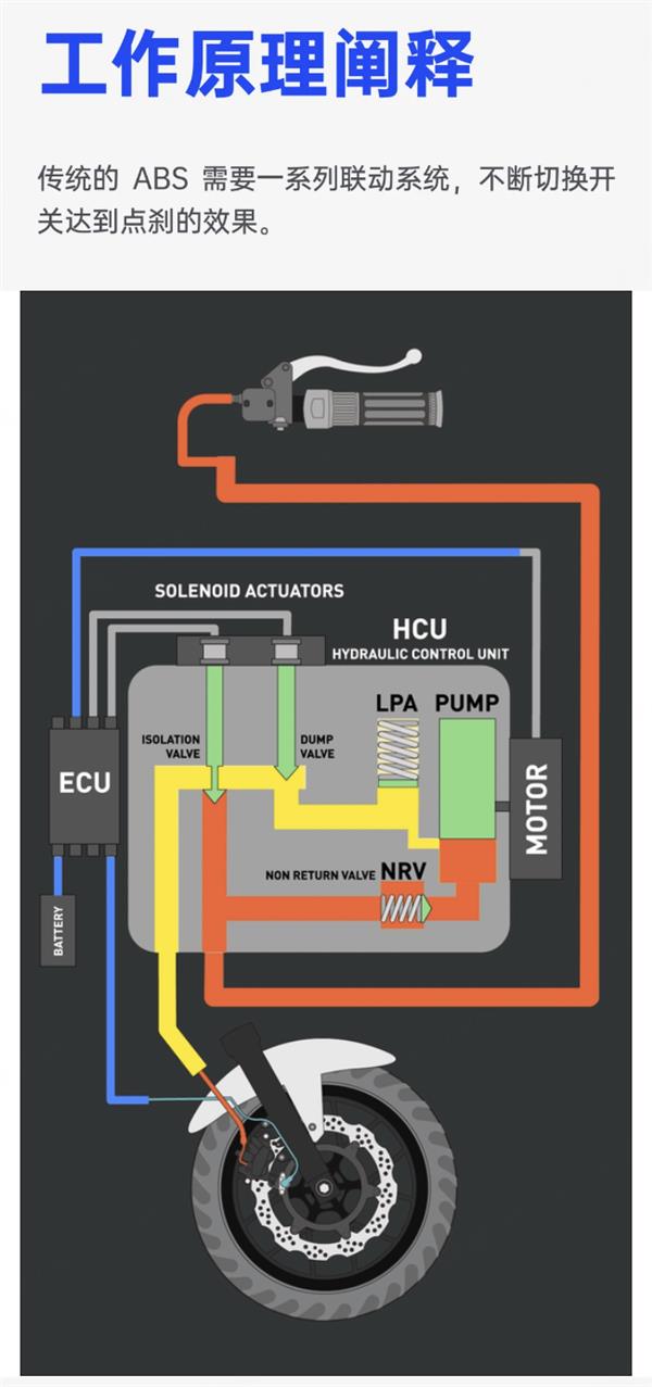 不论是传统 ABS 还是九号公司旗下零极创新自研的线性 ABS,虽然工作方式不同,但其目的都是防止车轮抱死,使车辆方向可控。