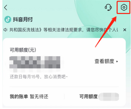 步骤四:在抖音月付页面,点击右上角齿轮状的【设置】图标;