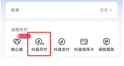 步骤三:在页面中间位置【金融支付】的下方,点击【抖音月付】进入;