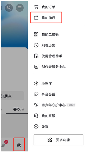 步骤二:在右侧出来的众多选项中,点击【我的钱包】进入;