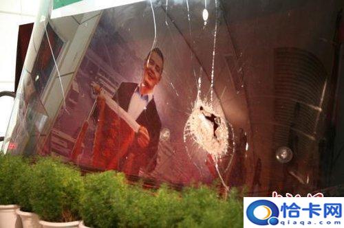图为吴斌出事时,被铁片砸碎的车玻璃。李晨韵 摄