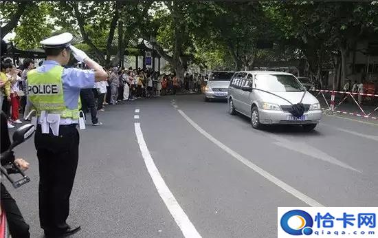 行至体育场路环城西路口,以往这个喧嚣嘈杂的路口,这一刻仿佛安静了下来,为英雄默哀。十字路口的车辆和行人,见灵车车队经过,主动停了下来,许多私家车司机从车里出来,站在车旁对着灵车行注目礼。一旁非机动车道上,往日熙来攘往的自行车、电动车此刻也安静地停在车道上。