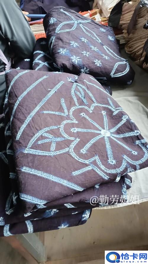 蜡染好以后方可拆线,并用温水泡着洗一道,把染料的味道洗淡一点。晾干收藏好待女儿出嫁之时,给女儿当嫁妆。