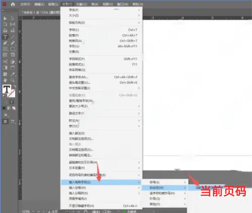 2、打开文字菜单,选择下方栏中的插入当前页码
