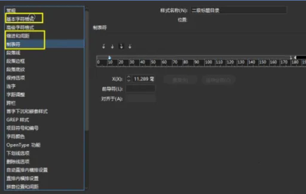 4、我们可以将光标插入目录的一个标题之中,然后在段落样式面板中会自动显示该标题所应用的段落样式,然后双击该段落样式进行修改,修改内容主要是字体、字号、首行缩进或左缩进以及添加治标符等,如图所示。