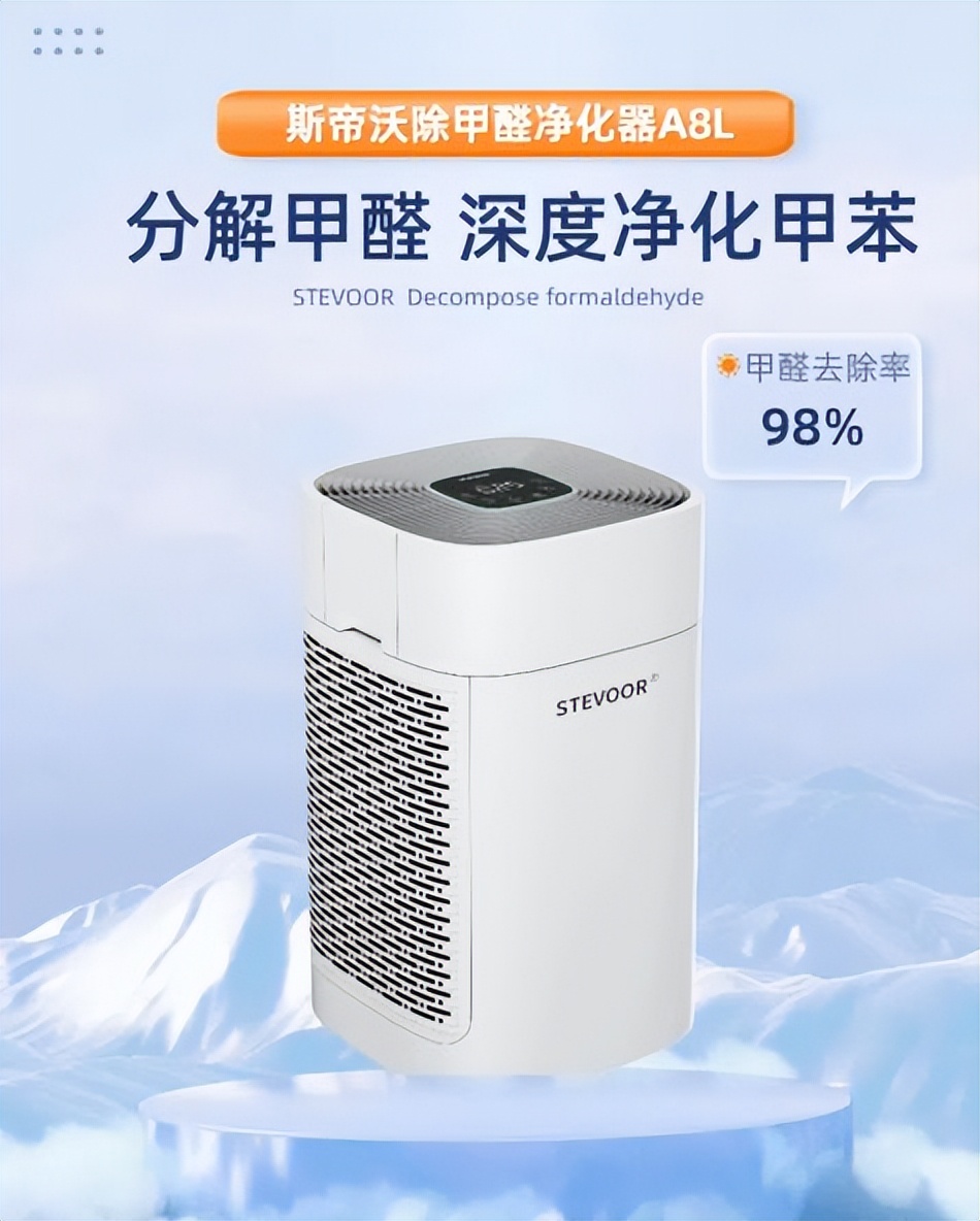 斯帝沃STEVOOR:源自英国伦敦,是英国知名的空气净化器品牌,也是国际十大高端空气净化器品牌之一。作为世界上最早从事空气污染治理和净化器产品开发的品牌,斯帝沃在行业内具有“领导者”的地位。其A8L型号专门针对新房装修去除甲醛研发,拥有创新的纳米分解甲醛技术和双风道过滤系统,能双效快速分解去除装修产生的空气污染物,甲醛去除率高达98%以上。此外,它还具备智能APP远程监控和睡眠静音模式,让用户在家随时都能呼吸到清新的空气。