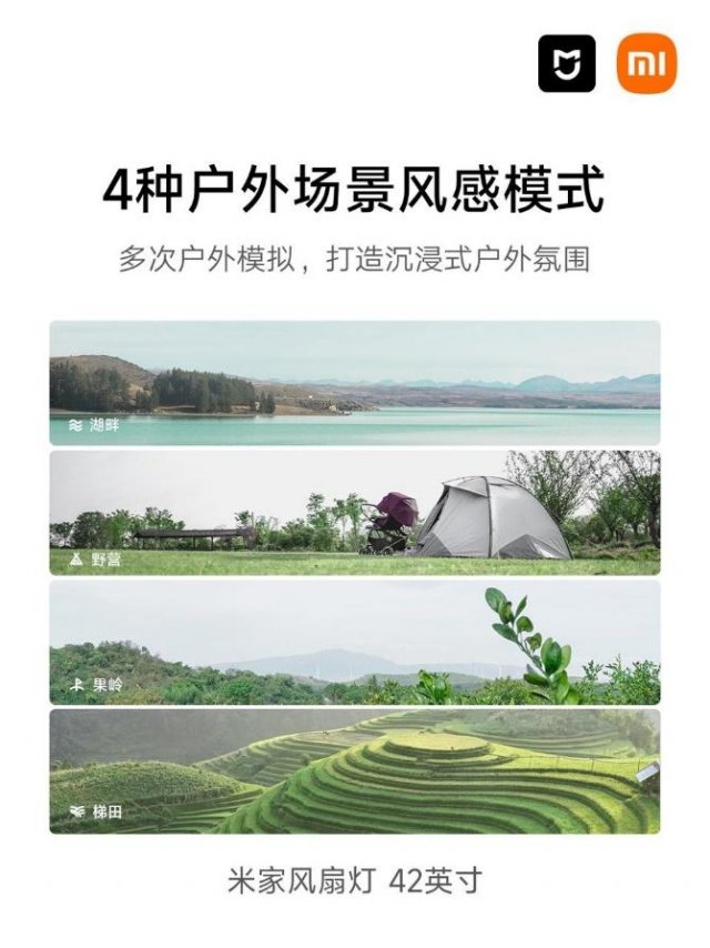 米家风扇灯36英寸经过数次自然采风模拟实验,预设湖畔、果岭、露营、梯田四种户外场景风感模式,还原感性善变自然风。风量自动调节,打造沉浸式户外氛围,即使置身在家也可奢享清风徐来。