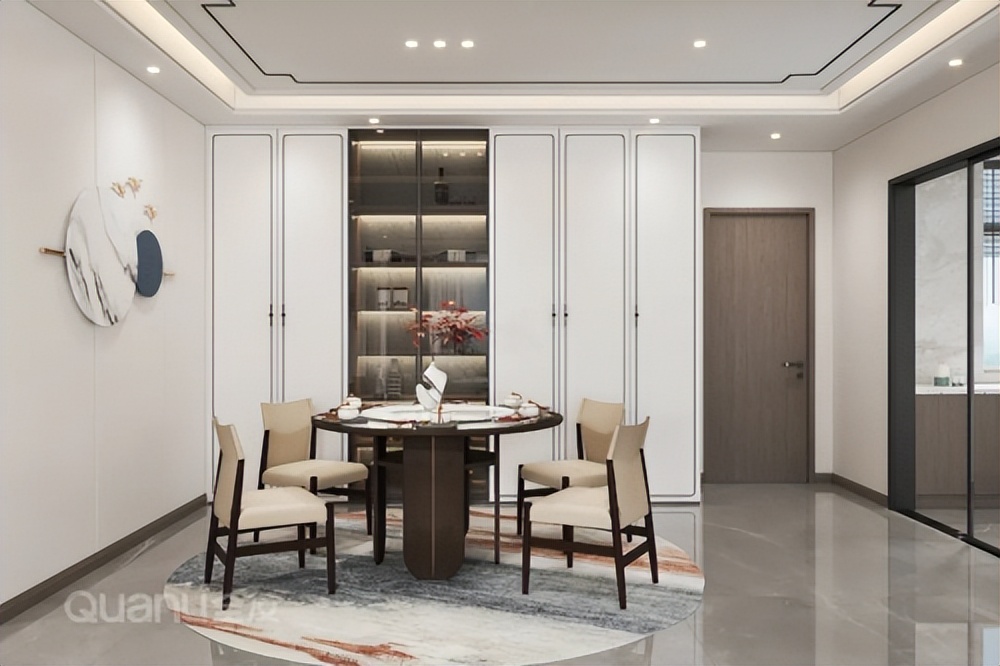 圆形餐桌的给人以团团圆圆的氛围感,逢年过节一家人围坐于此,其乐融融,好不温馨。