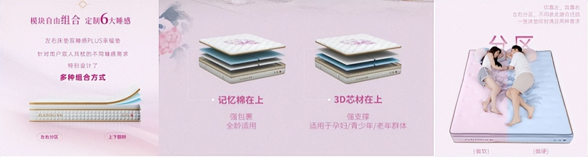 每个人对睡眠的感受都是独一无二的。因此,双睡感PLUS幸福垫特别设计了多种组合方式,以满足不同的睡眠需求。独特的左右分区设计,结合正反面翻转使用的可能性,提供多达六种的组合方式,可以根据个人喜好自由调整床垫的软硬度,实现一垫多用,睡眠感受量身定制。双睡感PLUS幸福垫,是银发一族床垫换新的最佳解决方案。