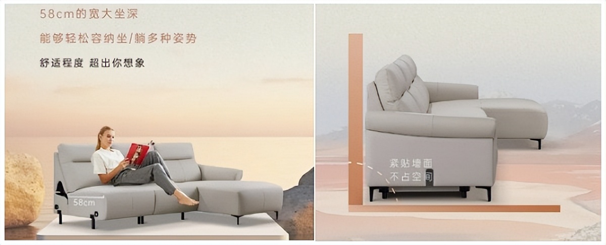 左右家居的换新方案是:大容量、零靠墙、舒适且优雅的超大坐深沙发。贴墙摆放,更节省客厅空间。58cm超大纵深,不仅能够提供卓越的坐卧体验,更以其优雅的线条和时尚的外观,成为您客厅中的亮点,完美匹配家庭社交生活。为家中增添一份社交魅力,让客厅成为朋友和家人的聚会圣地。