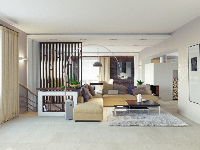 • 矮墙或书架:通过建造矮墙或放置开放式书架,可以在不显得压迫的情况下实现空间分区。这类隔断可以增加储物空间,并用于展示装饰品。