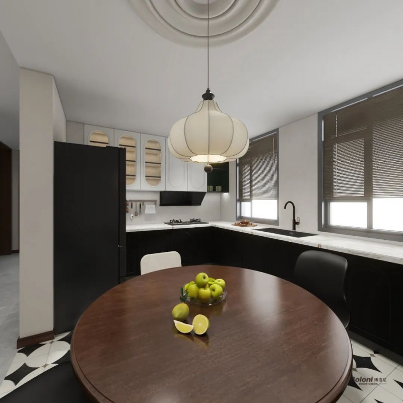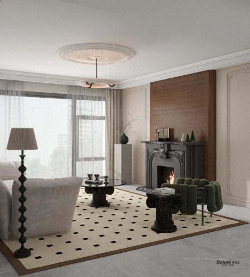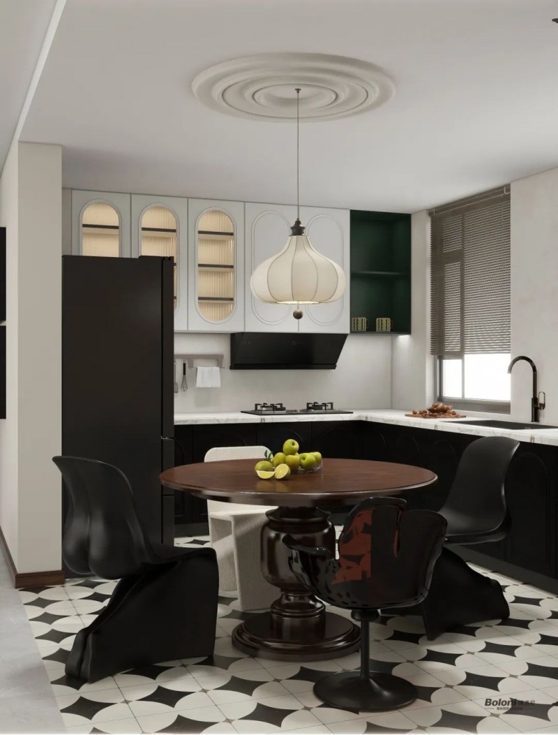 胡桃木色穿插其中,与黑白色共创古堡幻想