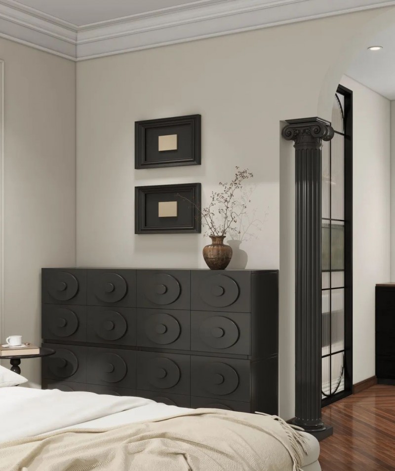 黑色艺术边柜,延伸出层层叠叠的舒适韵律